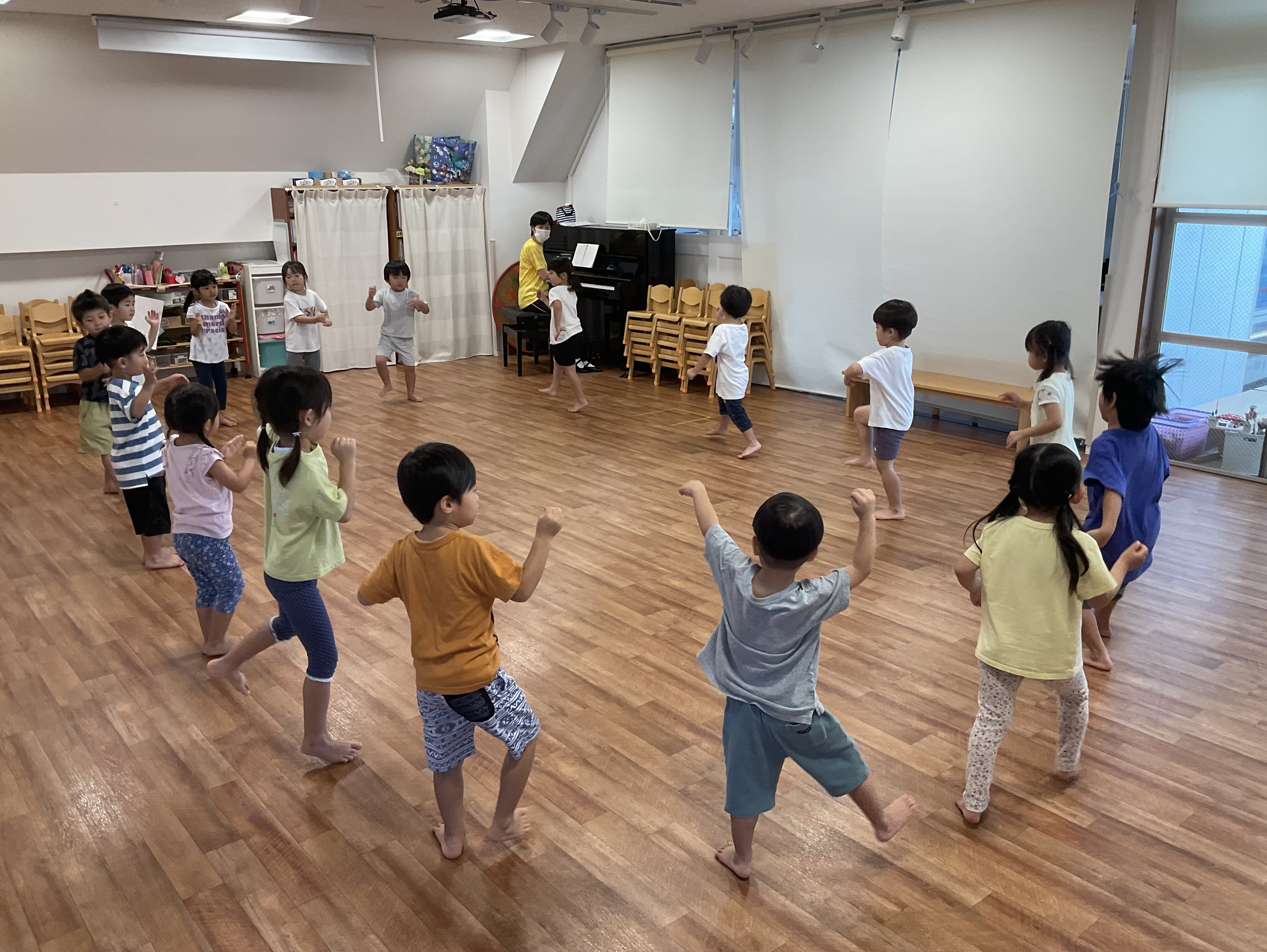 講師による指導は幼児クラスのみですが、遊戯やリズム遊びは乳児クラスから普段の保育に取り入れています。